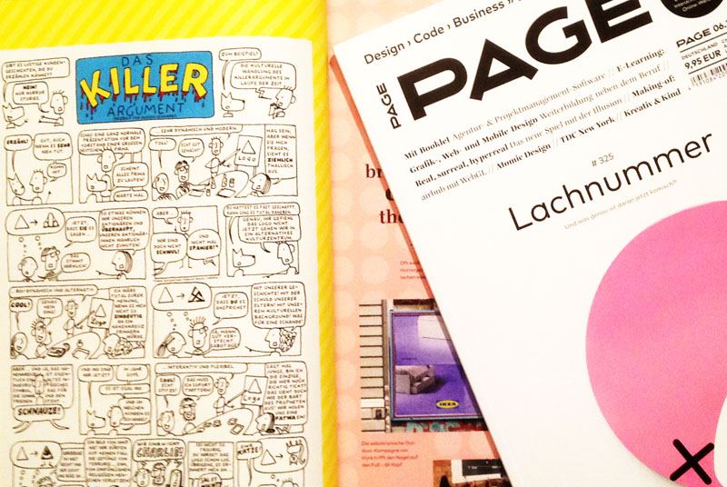 Das Thema der Page 06|15 ist Humor. Die Journalistin und Designexpertin Antje D. (Name von der Redaktion verändert – meiner Redaktion, nicht Ihrer) bat mich um einen Statement darüber: welche komischen, lustigen, lachhaften Situationen hast Du als Designer mit Deinen Kunden erlebt?